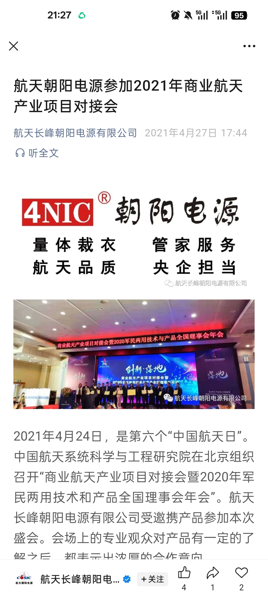 $航天长峰(SH600855)$ 子公司朝阳电源几年前就开始对接商业航天产业了