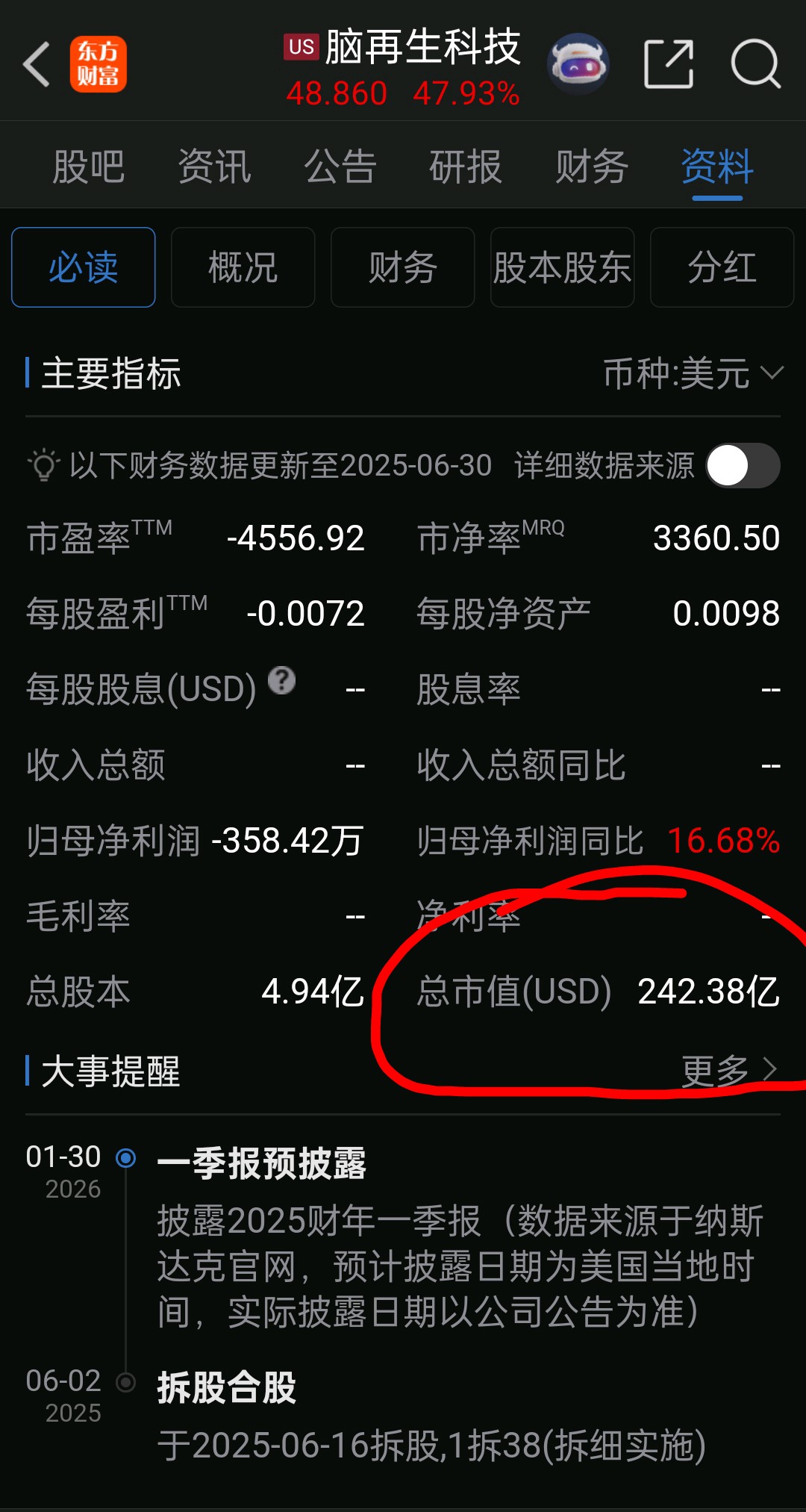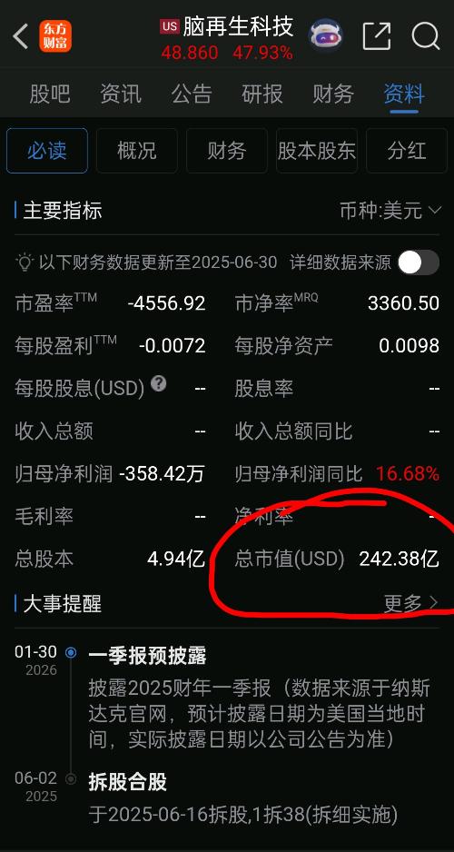 美国上市的脑再生科技是个负资产负债不盈利垃圾股是否被马斯克收购了呢?居然市值243亿美元合计约2仠亿人民币…