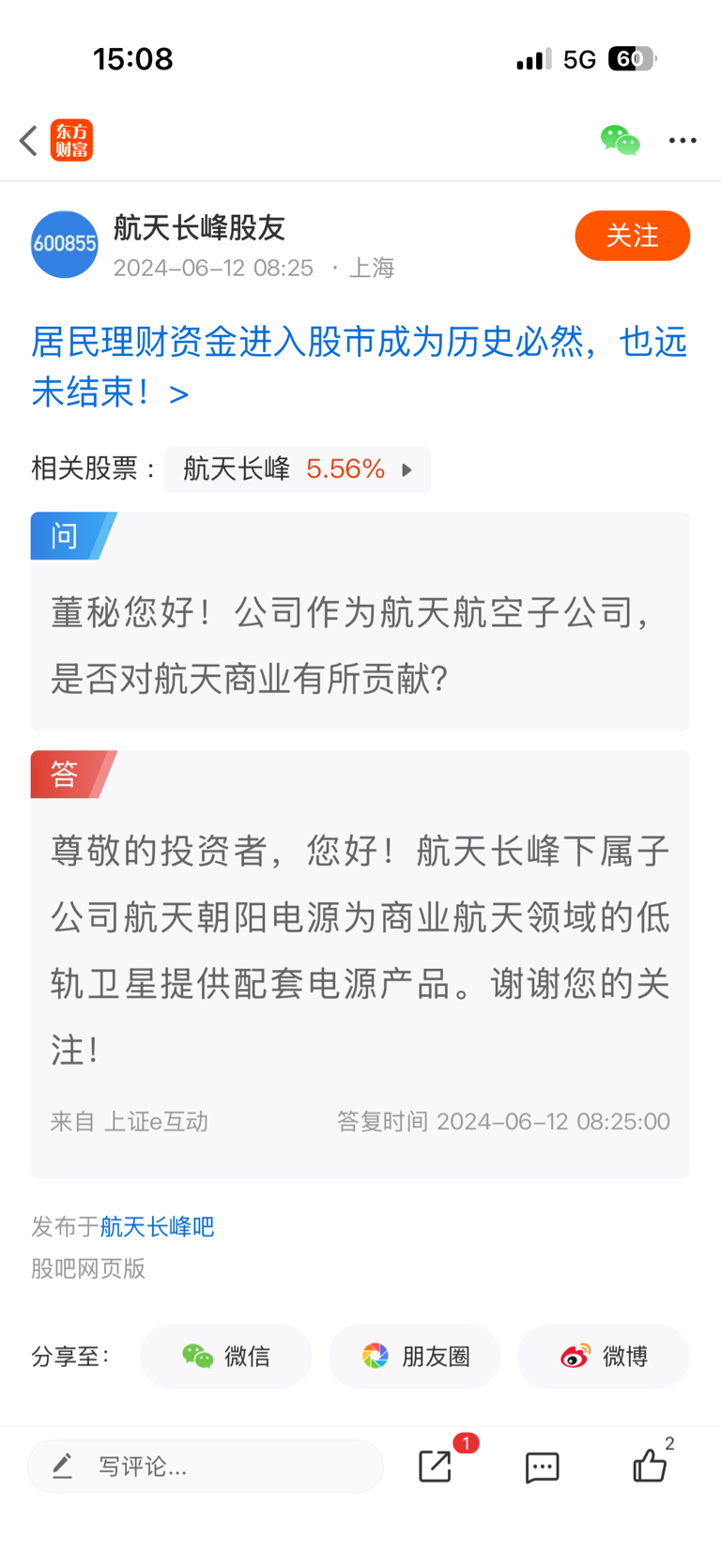 $航天长峰(SH600855)$ 到底是跟商业航天有没有关系?董秘前言不搭后语,异动公告说没有商业航天。。。