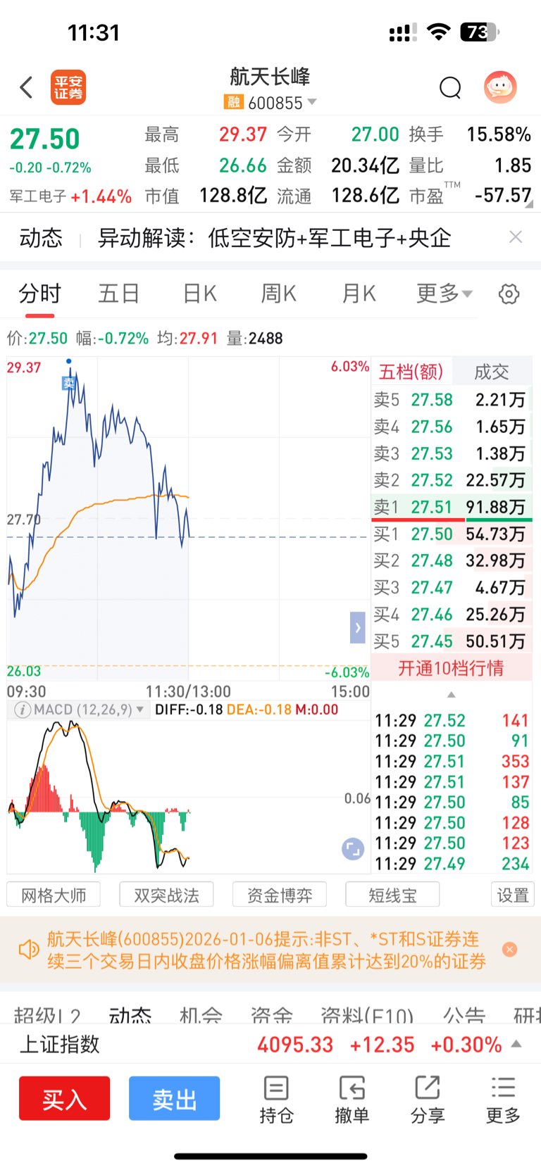 $航天长峰(SH600855)$ 祝兄弟们留下发财,高位跑了,感谢主力