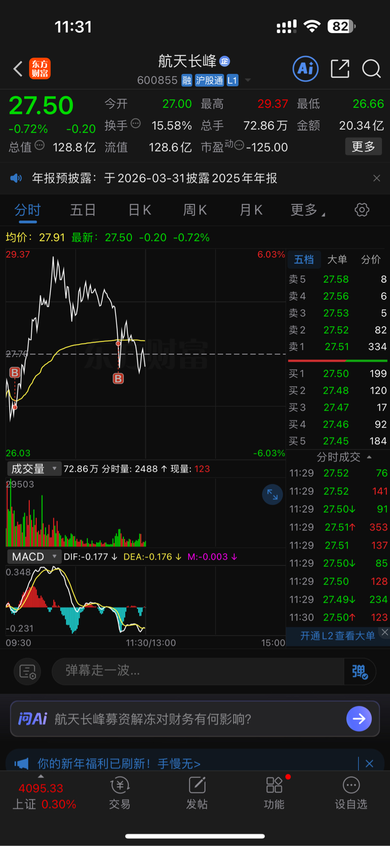 $航天长峰(SH600855)$ 今天大概率要吃面了 手贱加什么仓啊