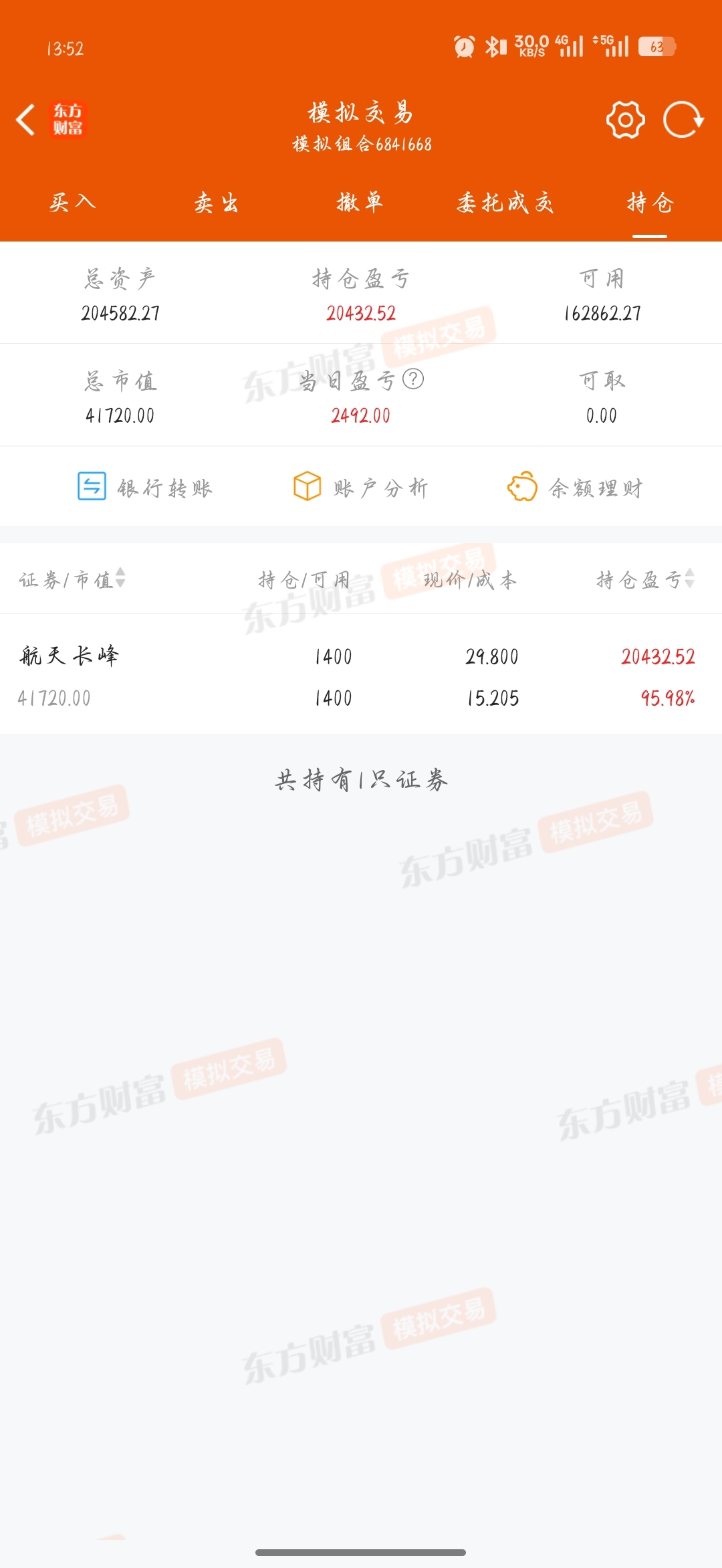 上月随便买了个模拟仓位,谁能想到啊,要是实盘多好啊
