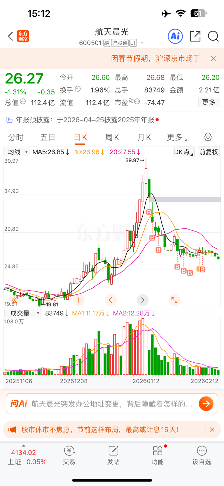 $航天长峰(SH600855)$ 虽然没买长峰,但我买了你老表,走势一样,补不动了