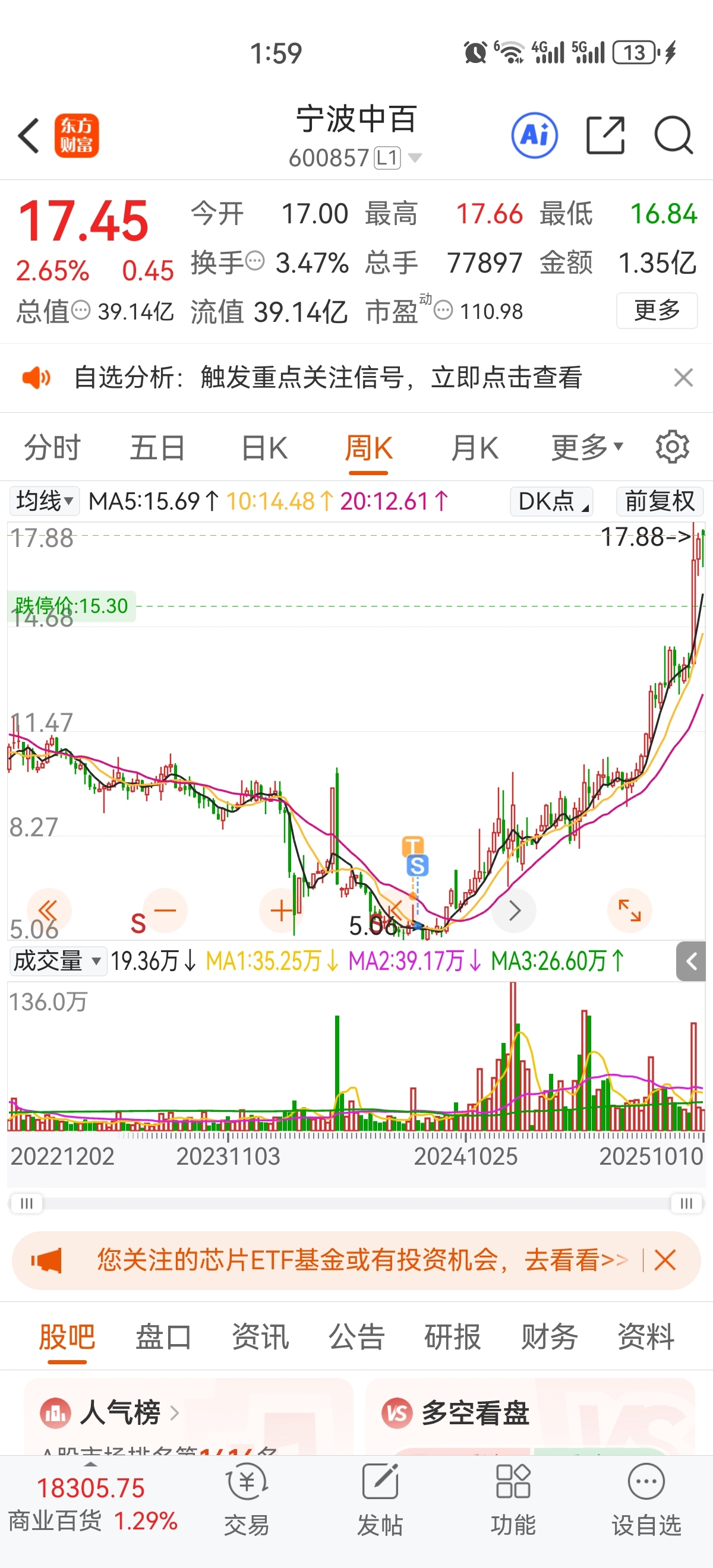 $宁波中百(SH600857)$ 不说了 一整年都是这样 现在知道怎么赚钱了吧