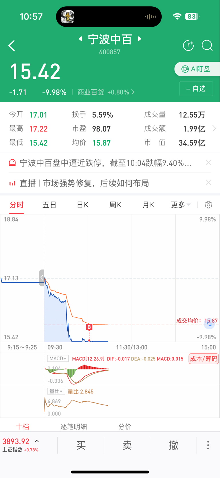 $宁波中百(SH600857)$ 建了300股底仓 放着过俩天来抄底