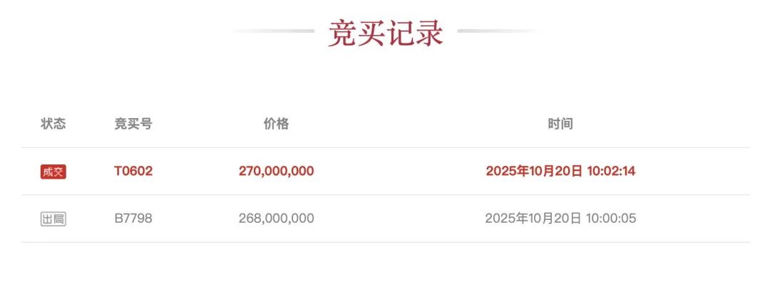 据淘宝网络司法拍卖平台显示,上述股权司法拍卖已于10月21日10时结束,共有3人报名参与,28898人次围观。