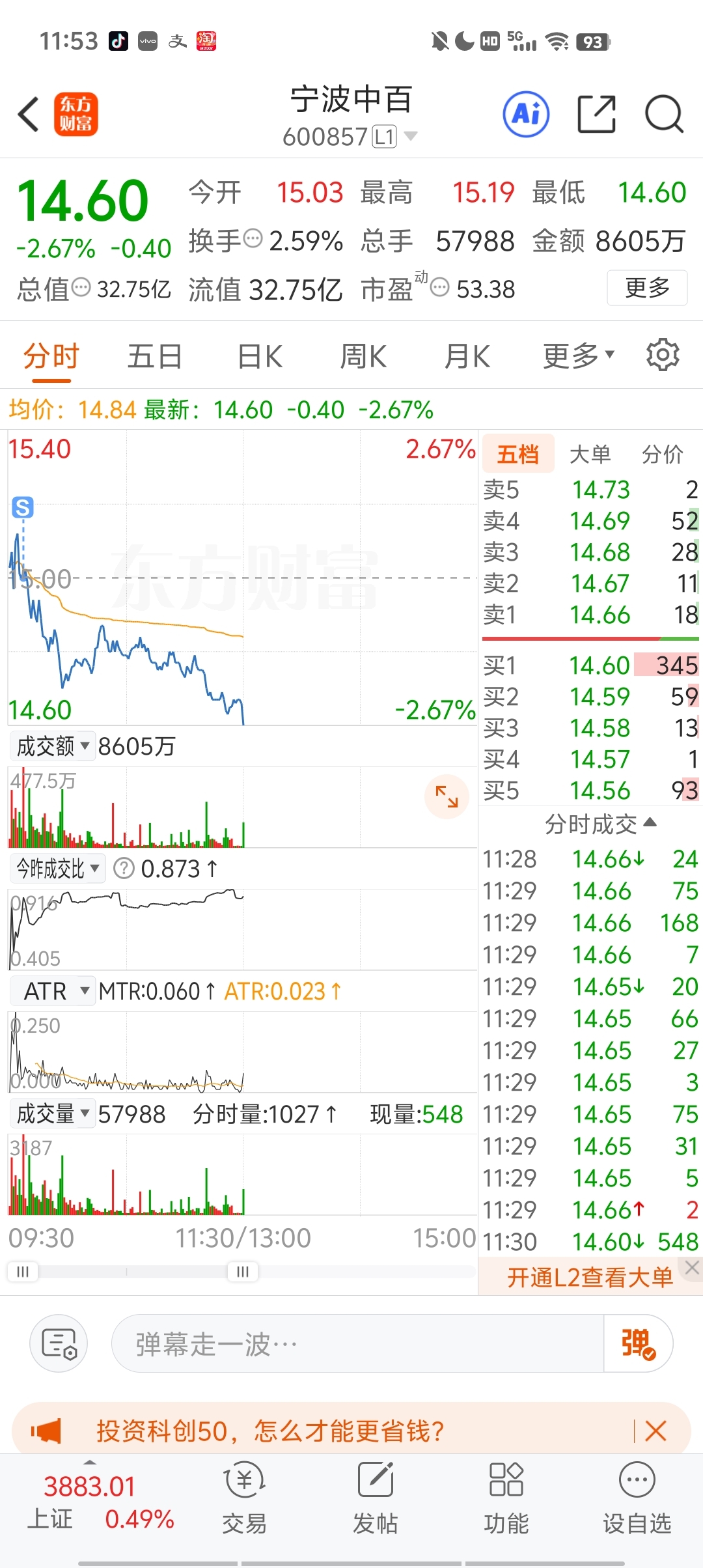 $宁波中百(SH600857)$ 昨天才建仓今天就得割,还准备今天追高加仓呢,靠