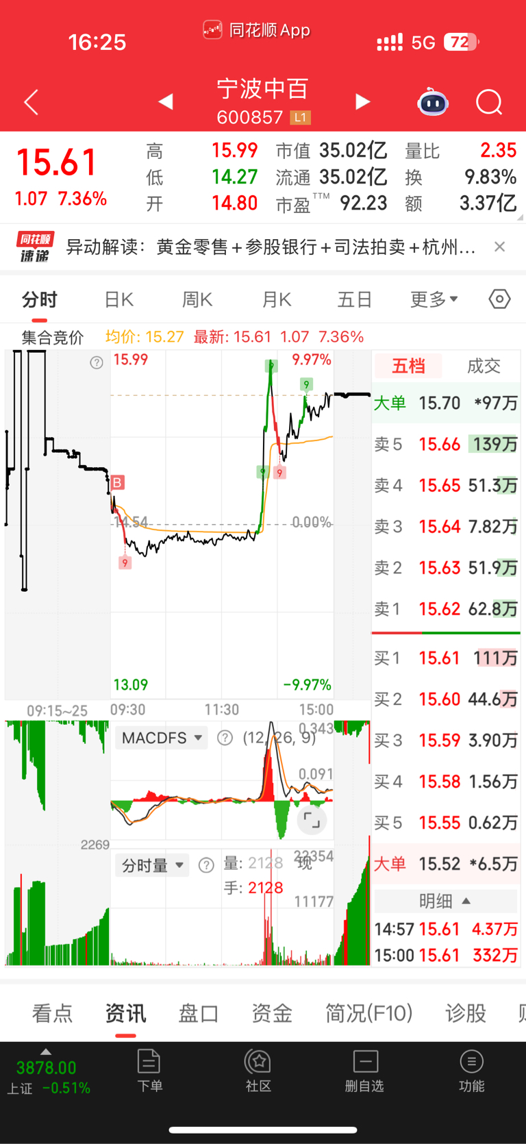$宁波中百(SH600857)$ 这行情给惊喜!