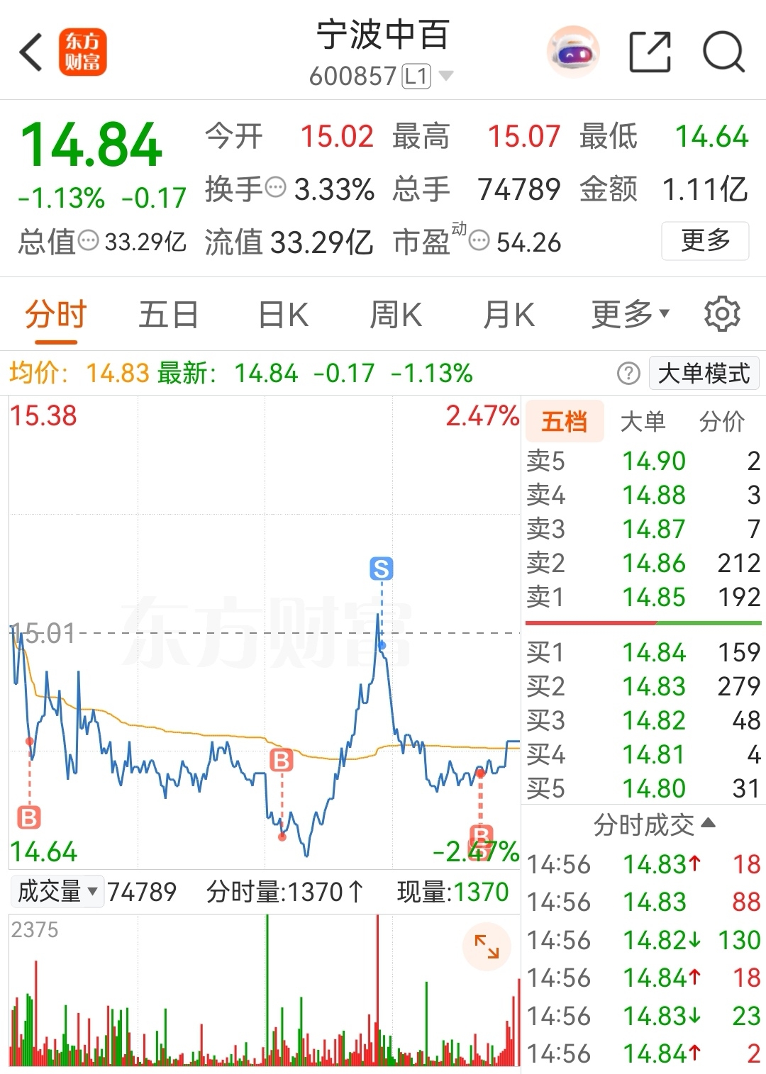 $宁波中百(SH600857)$ T就完事了,虽然浮动不大