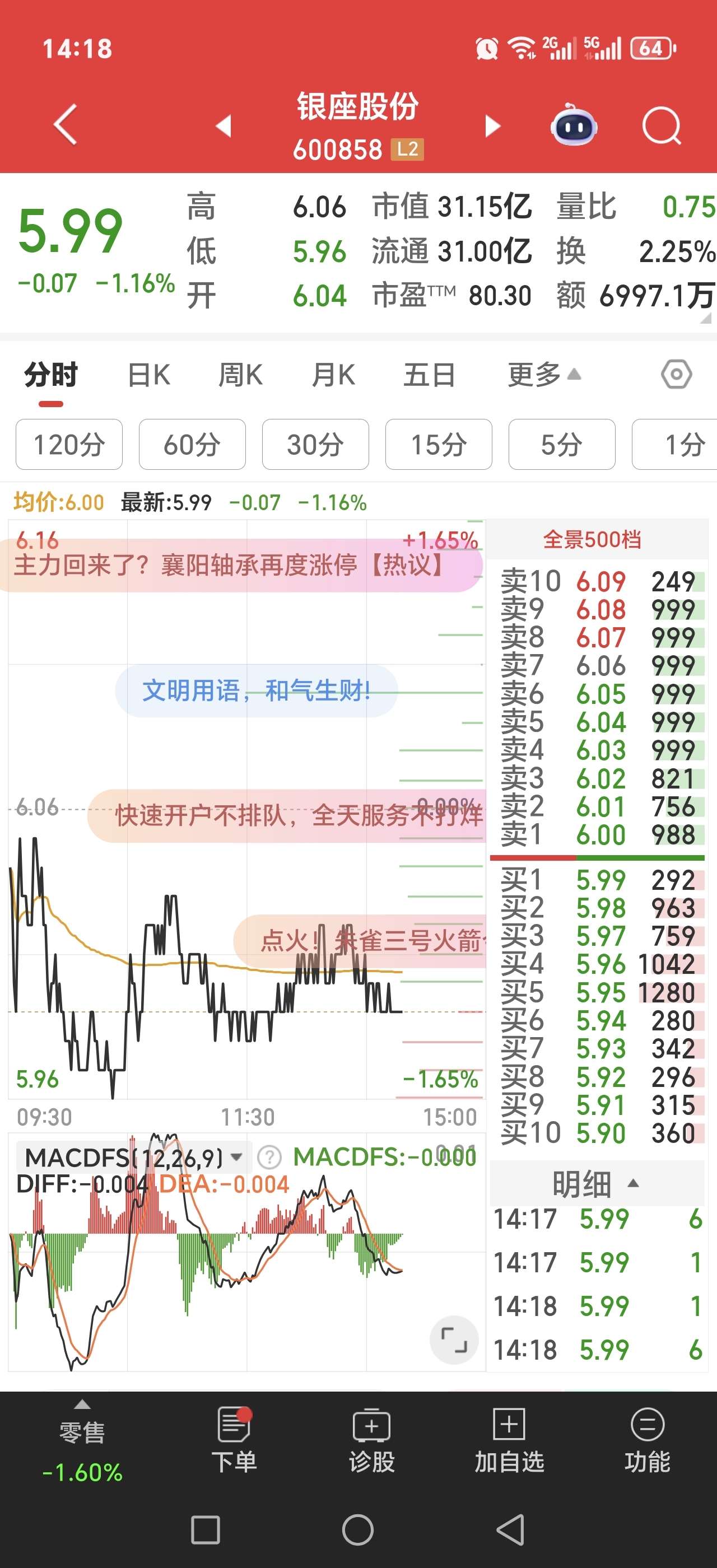 $银座股份(SH600858)$ 这么多999