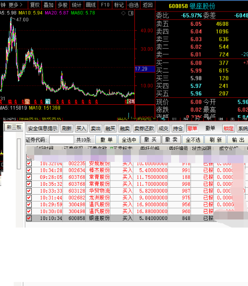 12月9挂单:银座5.84没抢到。看看今天的今天早上就差那么一点点就短线吃回成功