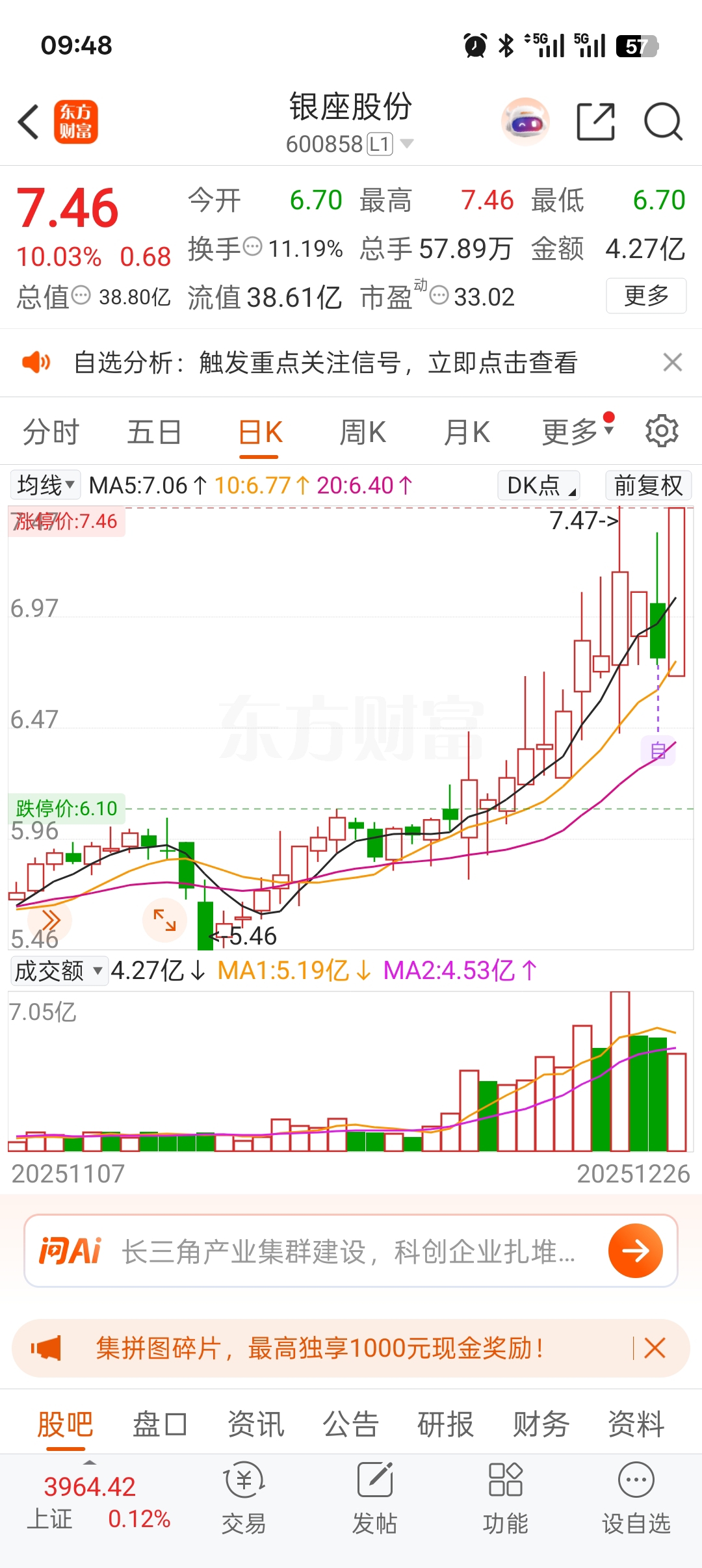 $银座股份(SH600858)$ 感谢主力的配合