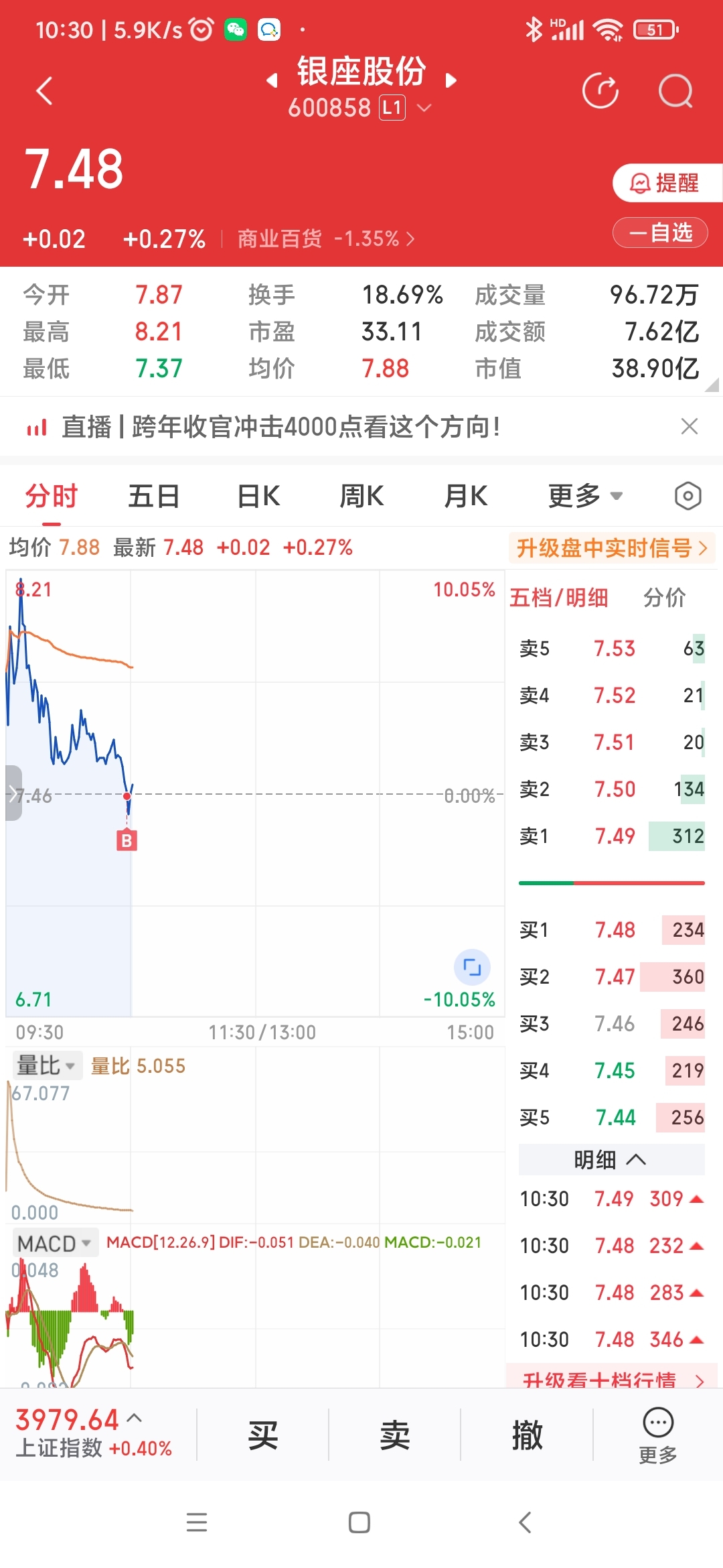 $银座股份(SH600858)$ 没钱消费就买一点消费股,支持一下中国经济。