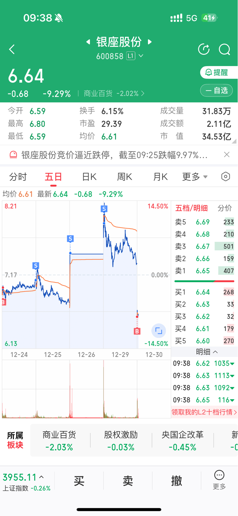 $银座股份(SH600858)$ 良心庄家