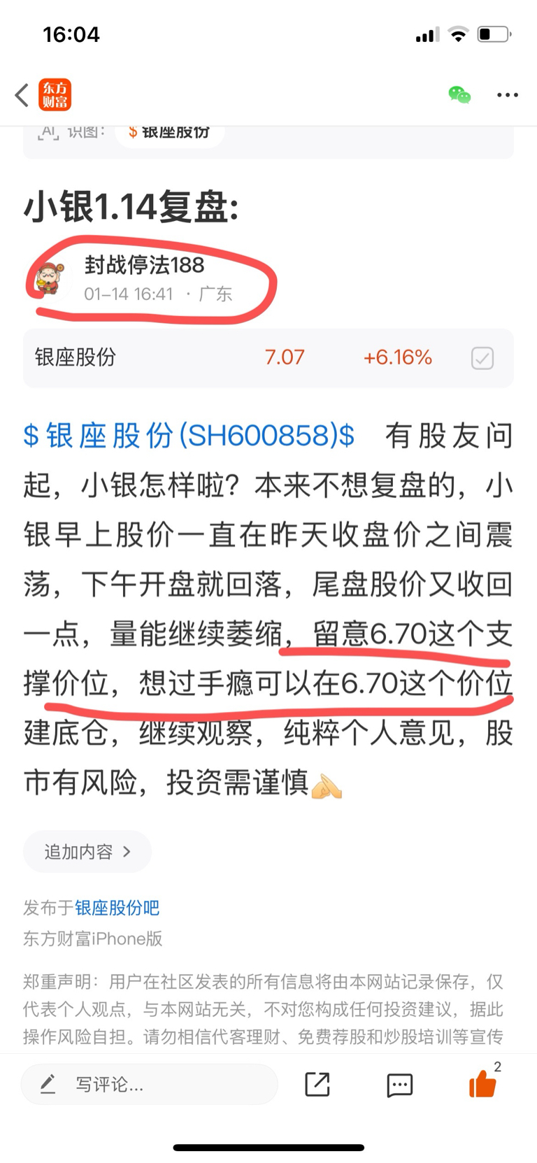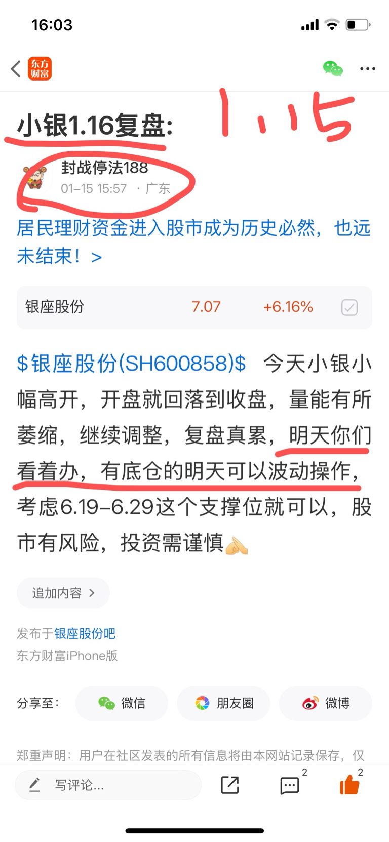$银座股份(SH600858)$ 恭喜看了我个人页面1.14复盘而建了小银仓的股友,今天小银放量大涨,盘中也出现一个高抛低吸的机会(涨停后回落),其他分析不想多说了,下星期一,小银继续可以波段操作,要怎样波段操作,你们应该明白的,记住不要卖飞底仓就可以,股市有风险,投资需谨慎