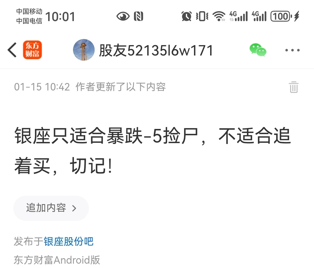 温馨提示: 1.根据《证券法》规定,禁止编造、传播虚假信息或者误导性信息,扰乱证券市场;2.用户在本社区发表的所有资料、言论等仅代表个人观点,与本网站立场无关,不对您构成任何投资建议。用户应基于自己的独立判断,自行决定证券投资并承担相应风险。《东方财富社区管理规定》
