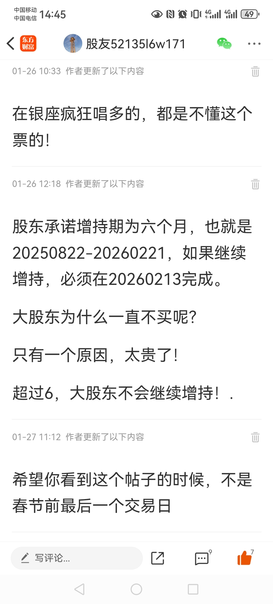温馨提示: 1.根据《证券法》规定,禁止编造、传播虚假信息或者误导性信息,扰乱证券市场;2.用户在本社区发表的所有资料、言论等仅代表个人观点,与本网站立场无关,不对您构成任何投资建议。用户应基于自己的独立判断,自行决定证券投资并承担相应风险。《东方财富社区管理规定》