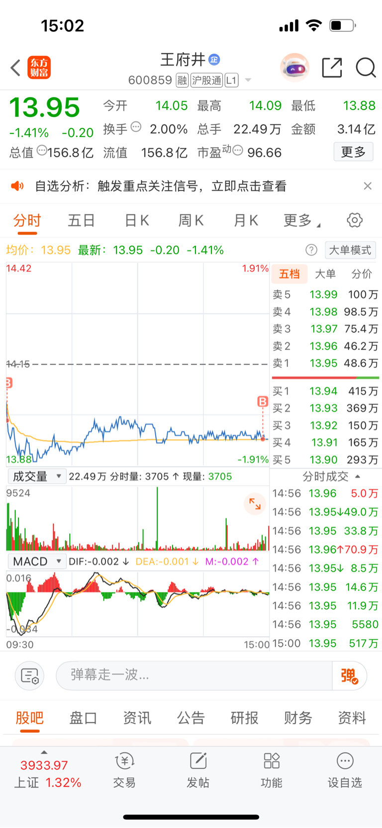 $王府井(SH600859)$ 今天加了两笔,我没有理由不加。牛市中五连跌、14块的王府井,若这都不敢加,那就回家洗盘子吧!明天有种继续绿啊,看我加不加就完事了!