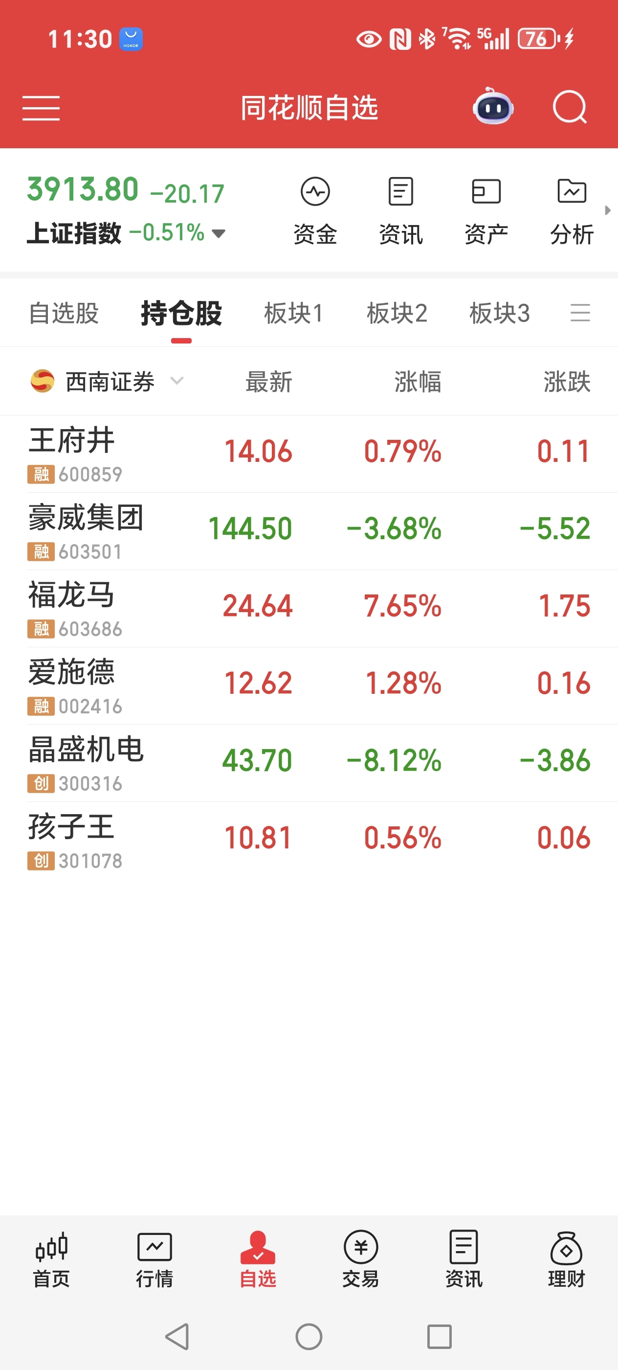 这支票目前仓位最重,今天受5日线压制,但还是跑赢了同板块的中免。希望目前这个位置