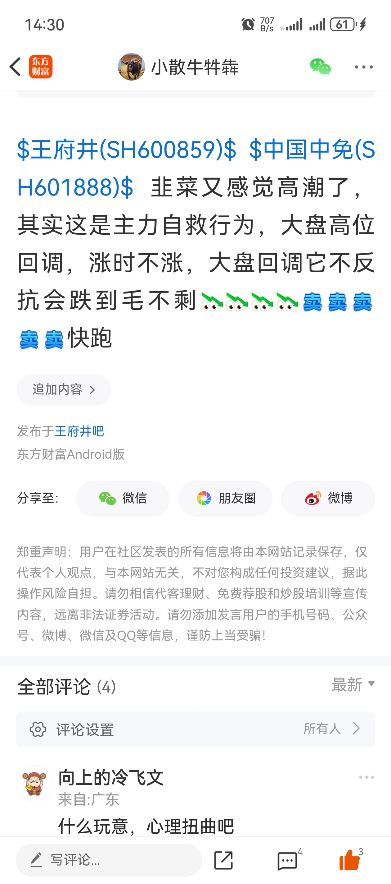 温馨提示: 1.根据《证券法》规定,禁止编造、传播虚假信息或者误导性信息,扰乱证券市场;2.用户在本社区发表的所有资料、言论等仅代表个人观点,与本网站立场无关,不对您构成任何投资建议。用户应基于自己的独立判断,自行决定证券投资并承担相应风险。《东方财富社区管理规定》