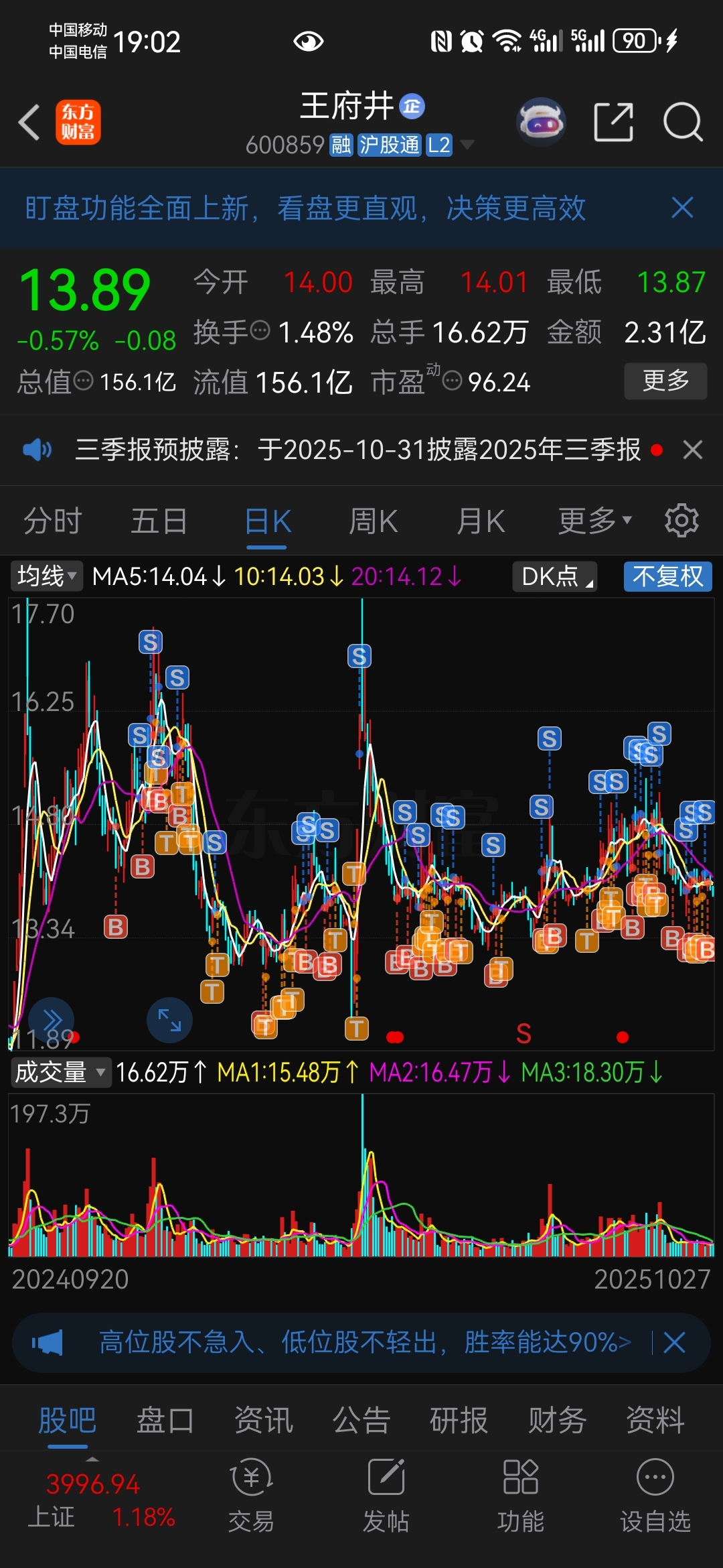 $王府井(SH600859)$ 大盘3千点,14.80买的你,现在大盘4千点你13.8,请问你是怎么做到的