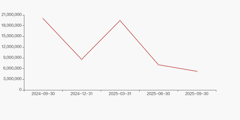 截至2025年9月30日,公司最新流通股本为11.24亿股。户均持有流通股数量由上期的1.04万股上升至1.11万股,户均流通市值15.7万元。