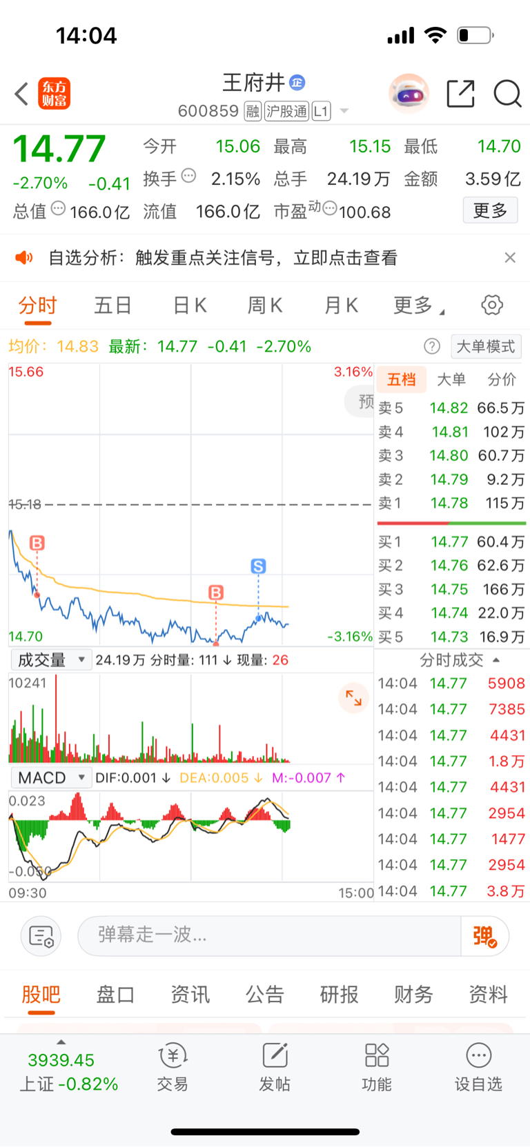 $王府井(SH600859)$ 他们都在等13,而我,选择做一个砸盘中的逆行者。加油,老王!