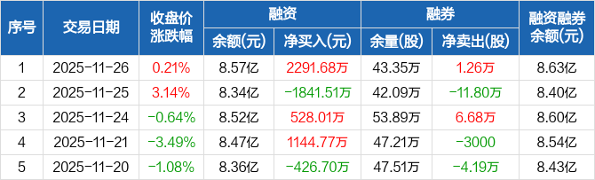 王府井:融资净买入2291.68万元,融资余额8.57亿元(11-26)