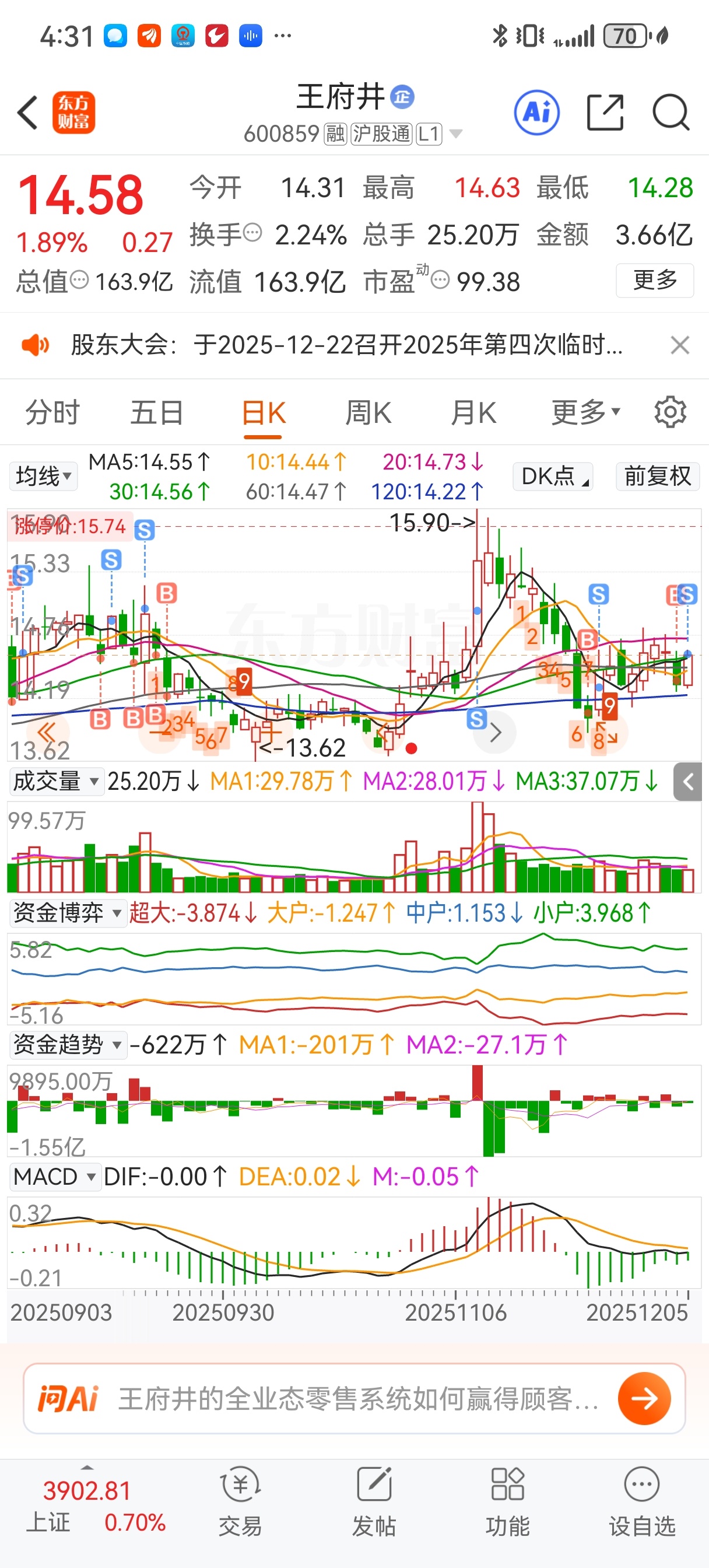 $王府井(SH600859)$ 走了不玩了,太磨人了