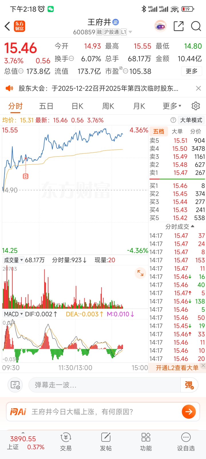 $王府井(SH600859)$ ????早上那么强你是装的?