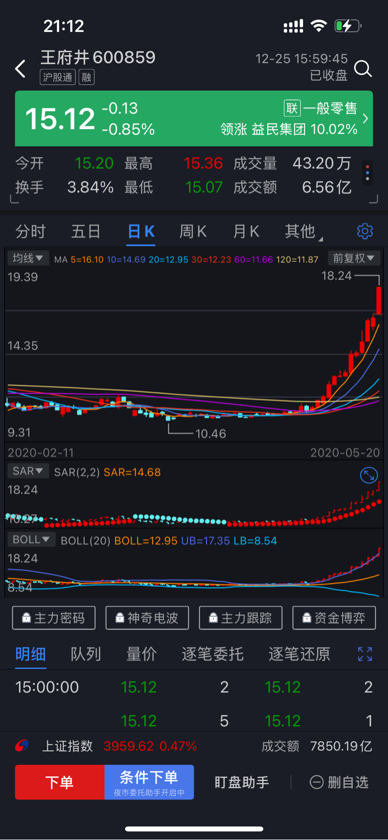 $王府井(SH600859)$ 从10块突然窜到70,消化了5年,目前15。