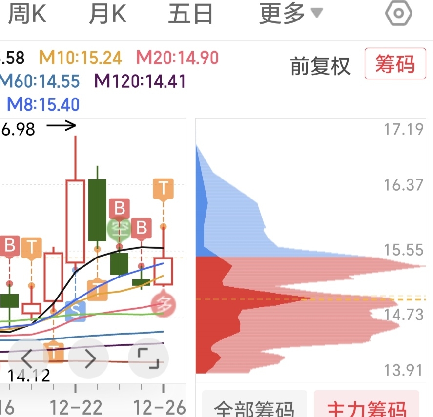 $王府井(SH600859)$ 最近老王操作节奏踏的还可以,基本都是正面操作。这个股不适合短线,技术好可以做做波段,否则拿着就行了。湾里开业叠加中标t2免税店,明年业绩应该不会差。吧里怨气太重了也不知道为什么,不看好换股就好了,又当又立的活该你亏钱哎。今天整体是降了一些仓位,短期支撑看20日线可以适当补仓,下周20日线应该就在15以上运行了
