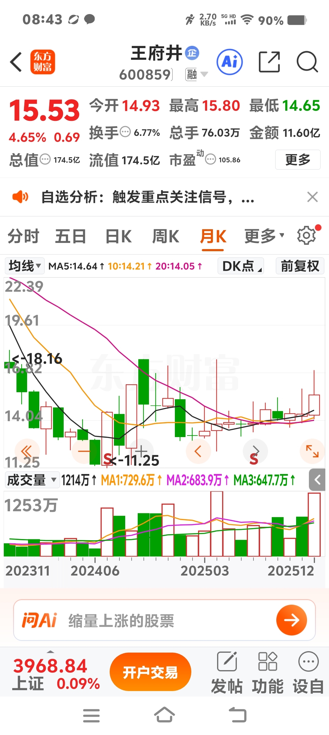 $王府井(SH600859)$ 趋势已明,方向对了就是赢家。高抛低吸反复T之,别丢筹码,目标有惊喜。