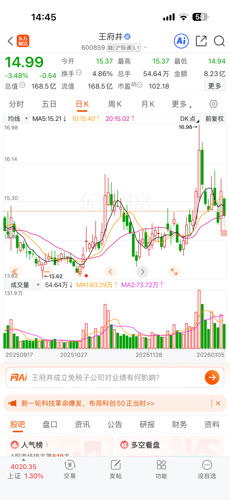 $王府井(SH600859)$ 今天开始建仓,慢慢来。