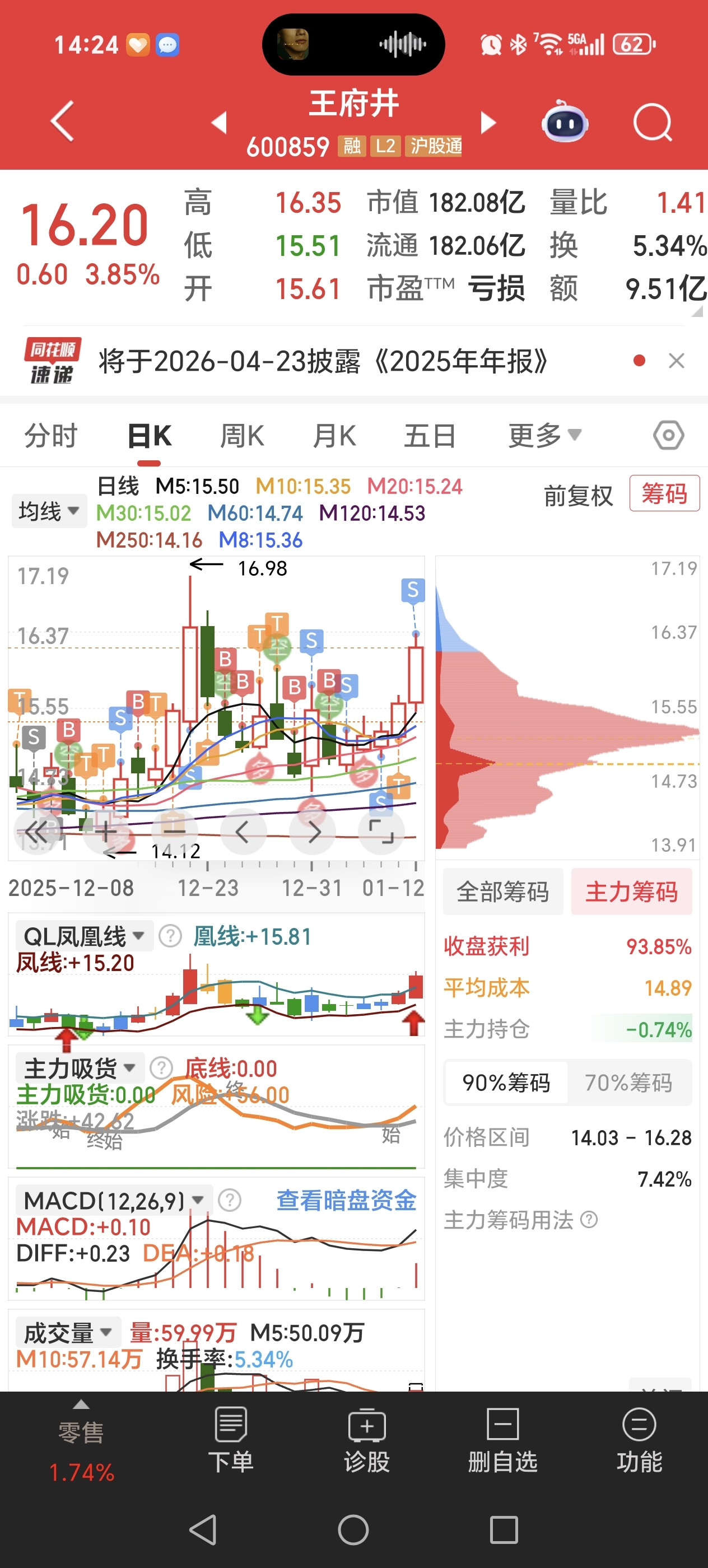 $王府井(SH600859)$ 老王今天表现不错呀,近期关注点和仓位一直在ai应用,16.2刚看到减了点