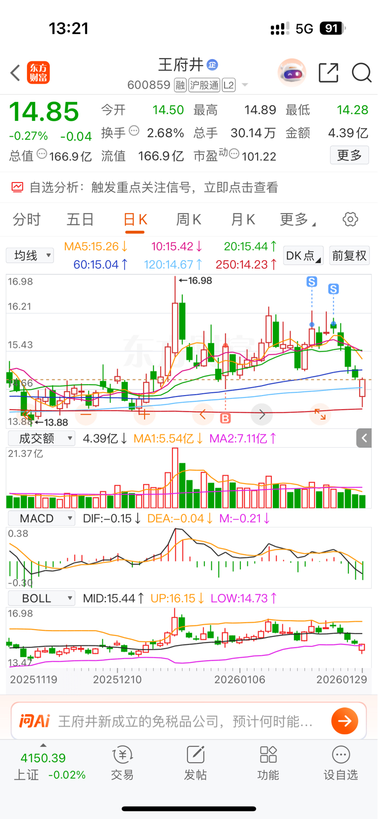 $王府井(SH600859)$ 该强不强视为弱,庆幸走的及时
