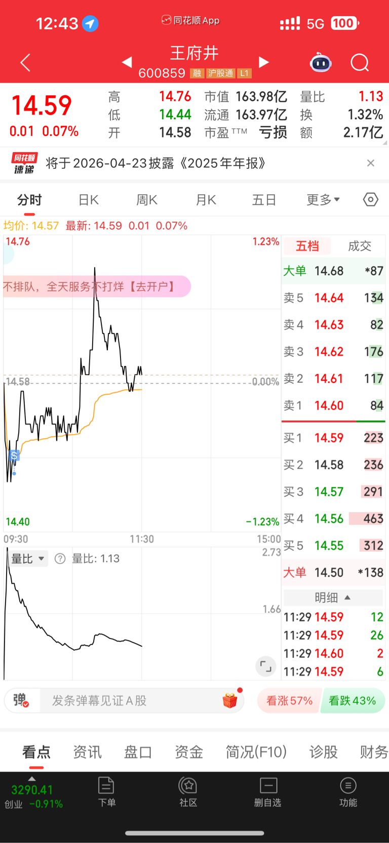 $王府井(SH600859)$ 伤心的故事,王府井你千万不要涨,我明天就买回来,下午跌多点