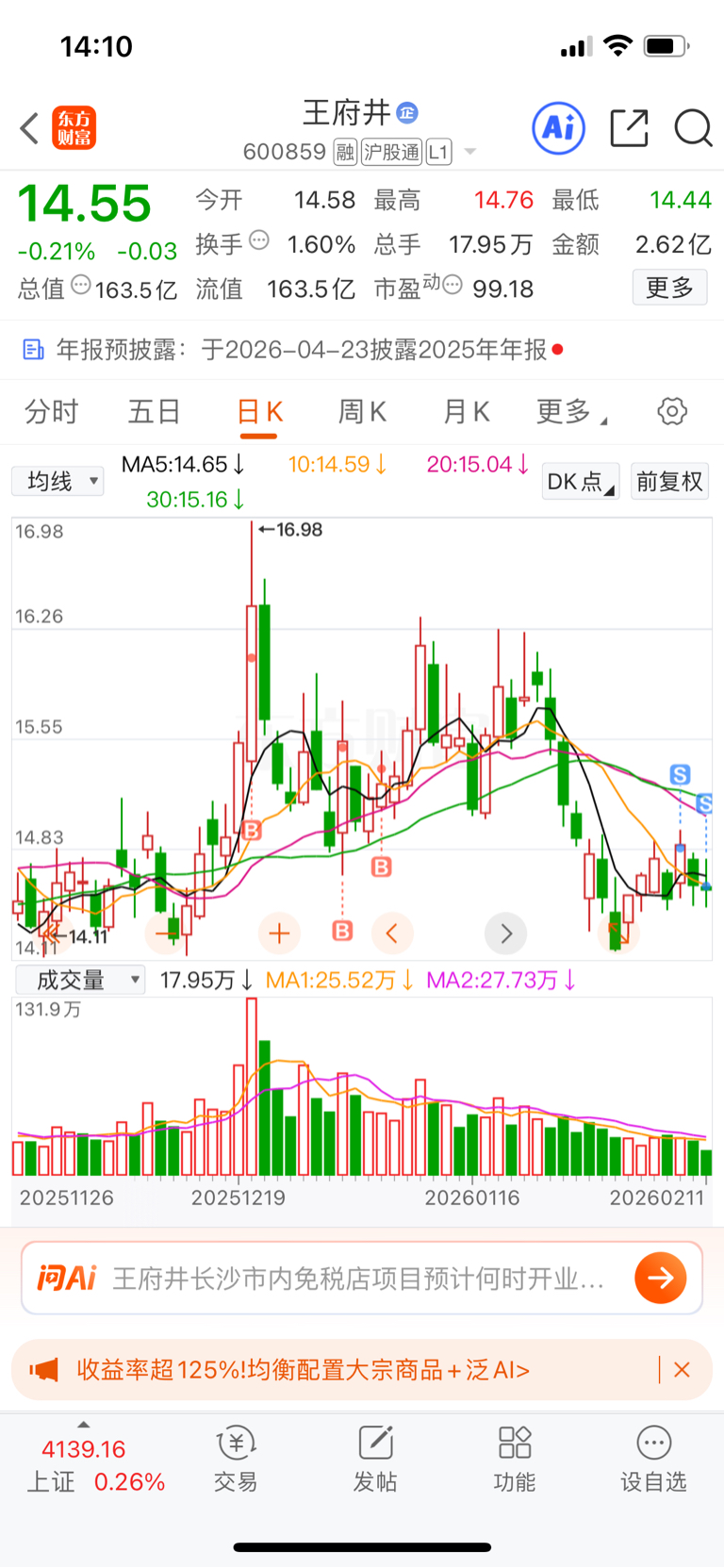 $王府井(SH600859)$ 走了 总仓亏损0.几
