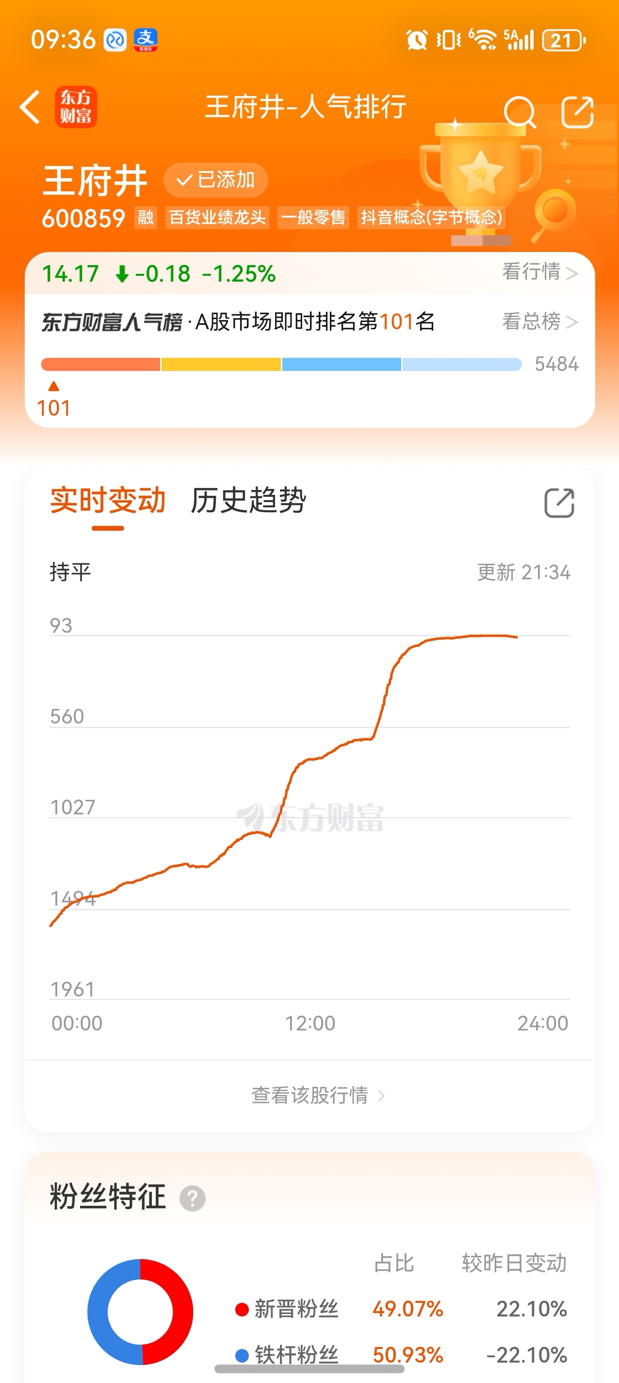 $王府井(SH600859)$ 初八按照这个分时图走