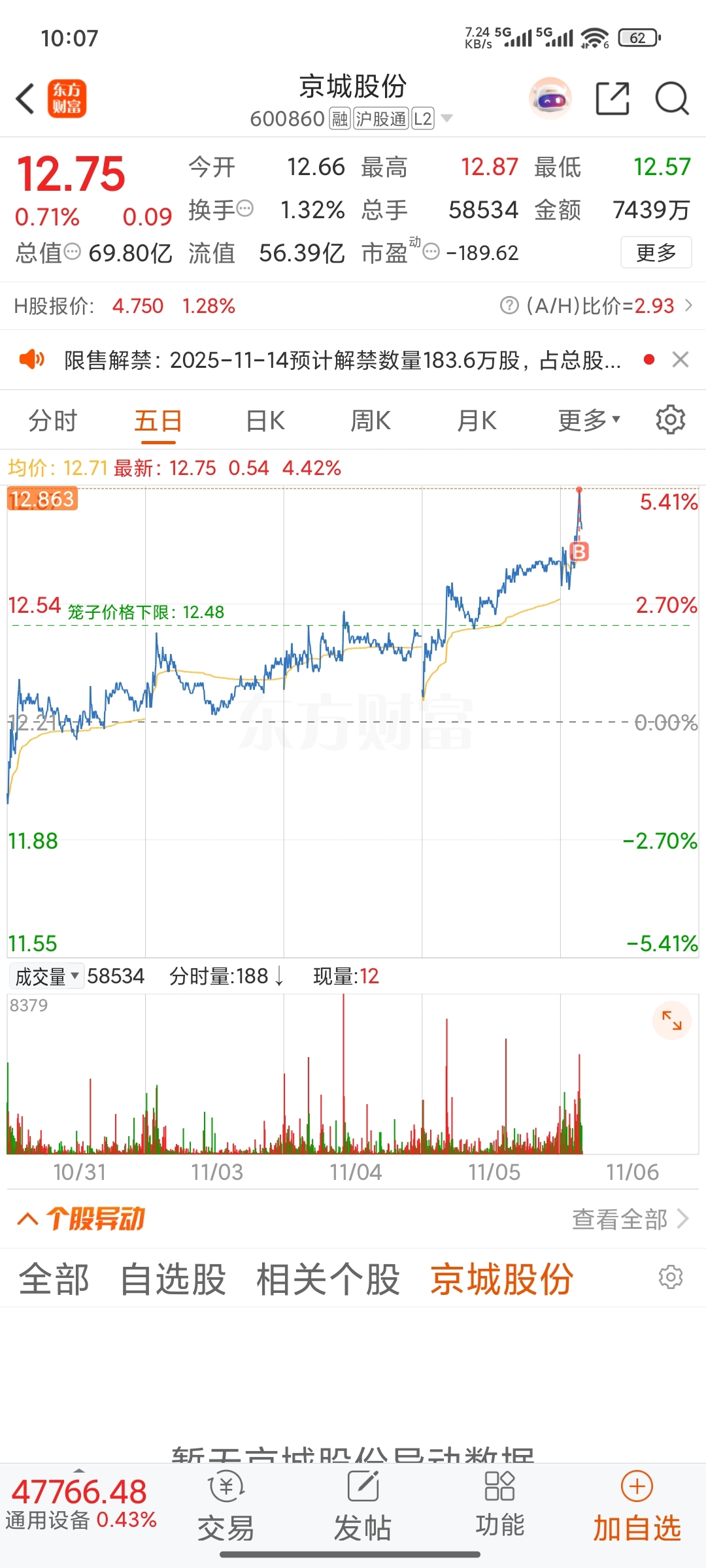 $京城股份(SH600860)$ 我感觉我真厉害,高处不胜寒啊!