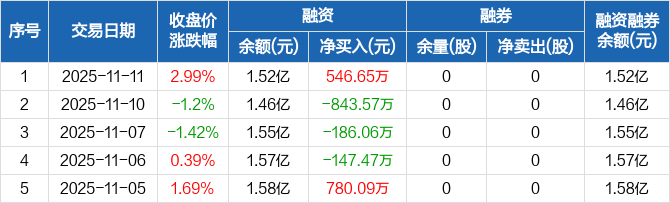 京城股份:融资净买入546.65万元,融资余额1.52亿元(11-11)