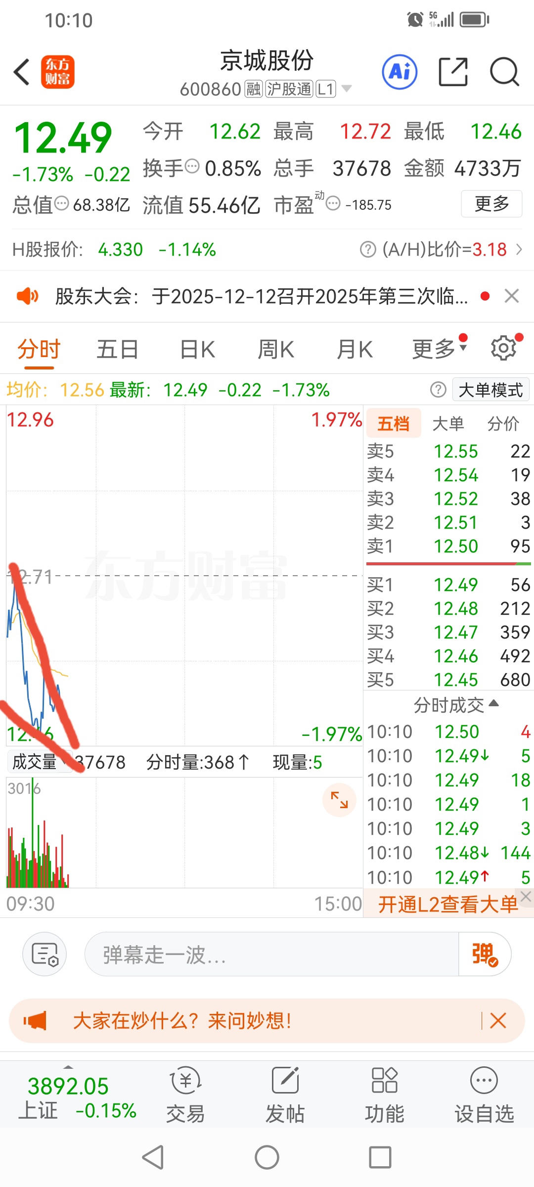 $京城股份(SH600860)$ 看样子是不是要向下突破了