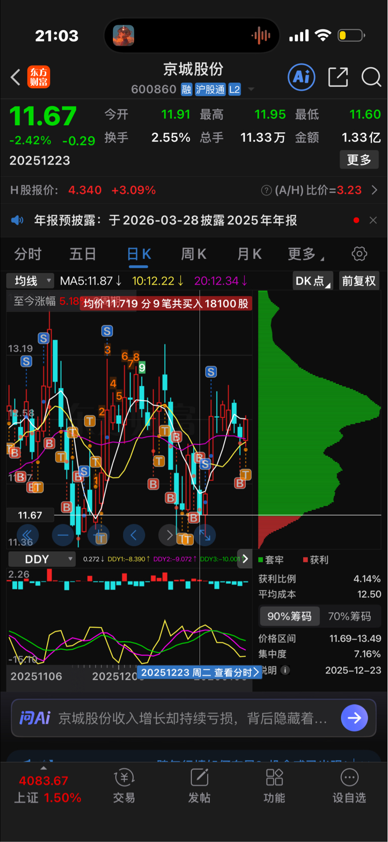 $京城股份(SH600860)$ 他在隔壁有商业航天概念,他也是有机器人概念。但是,他所有的概念都是勉强的、擦边的、山寨的。加上业绩差,热点三五年之内也轮换不到氢能概念板块,所以一时半会价格很难有本质的变化。好在,作为北京国资委下属企业,基本不用担心st和退市,还存在一定的重组想象空间。低于11.5就进货,到12.5就出掉。偶尔到13也站不稳。