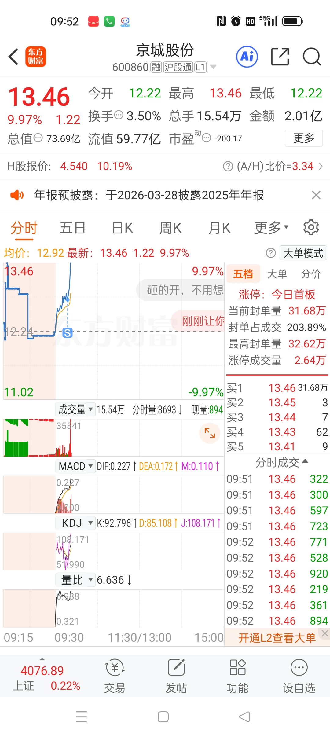 $京城股份(SH600860)$ 就差我这点?