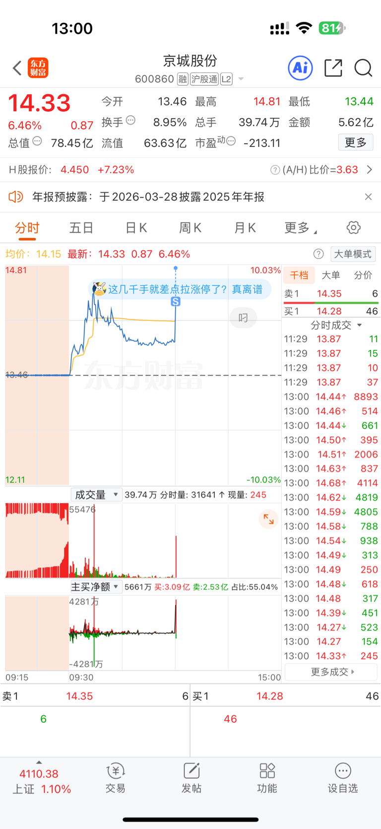 $京城股份(SH600860)$ 提前单的好处在这里哈哈。