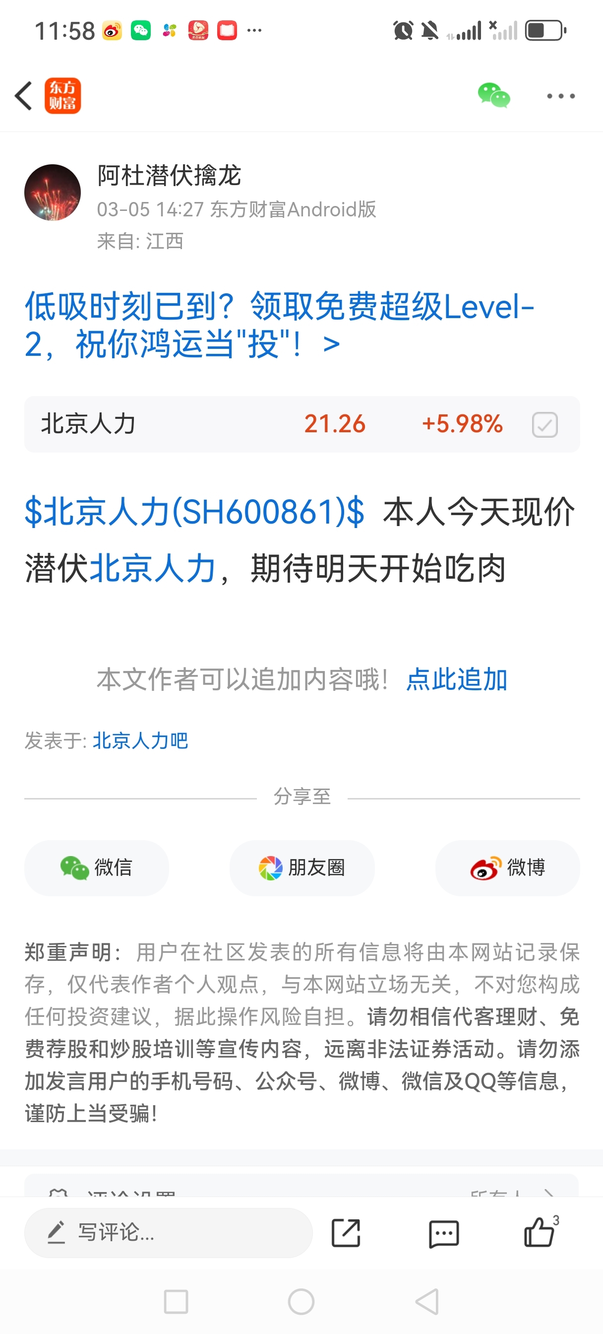 $北京人力(SH600861)$ $机器人(USBLOCK|US37075)$ 昨天潜伏北京人力,今天就吃肉了:
