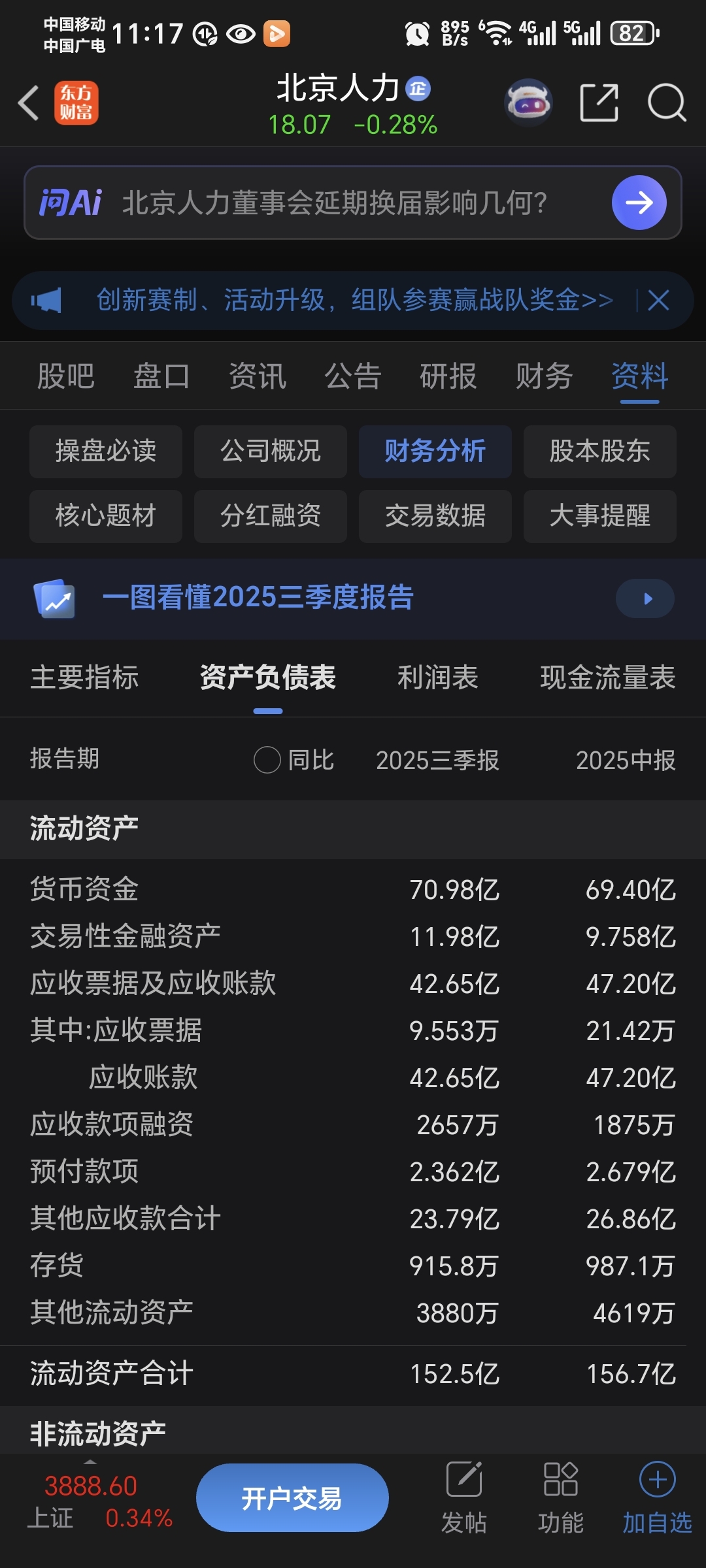 $北京人力(SH600861)$ 货币资金挺多的哦