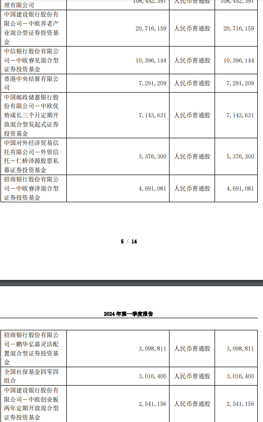 2024年一季报显示,中欧系列最高持有北京人力超过4500万股,