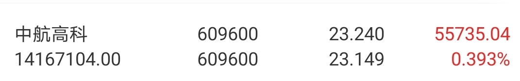 $中航高科(SH600862)$ 吃肉不远了,哈哈