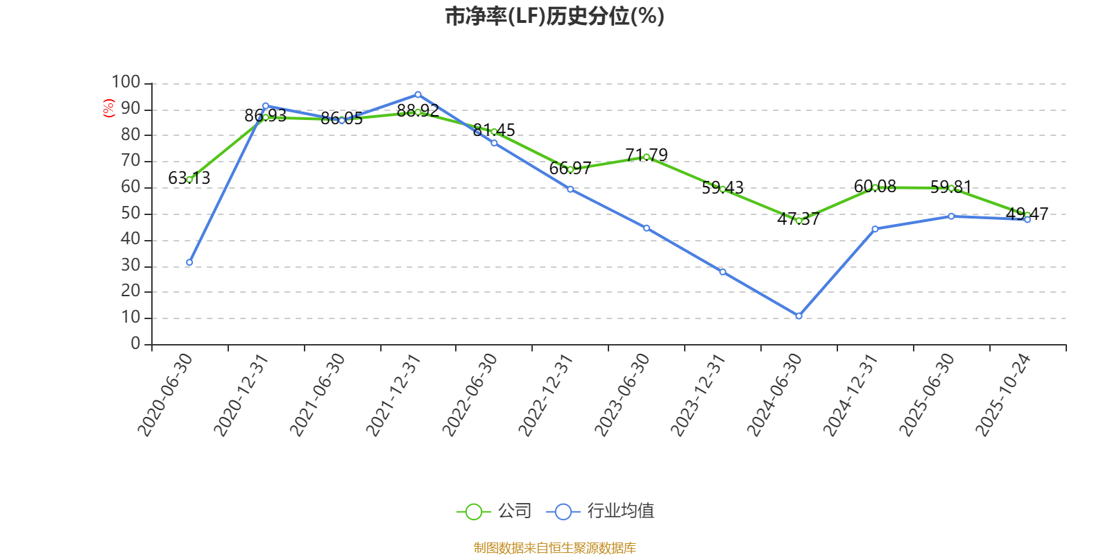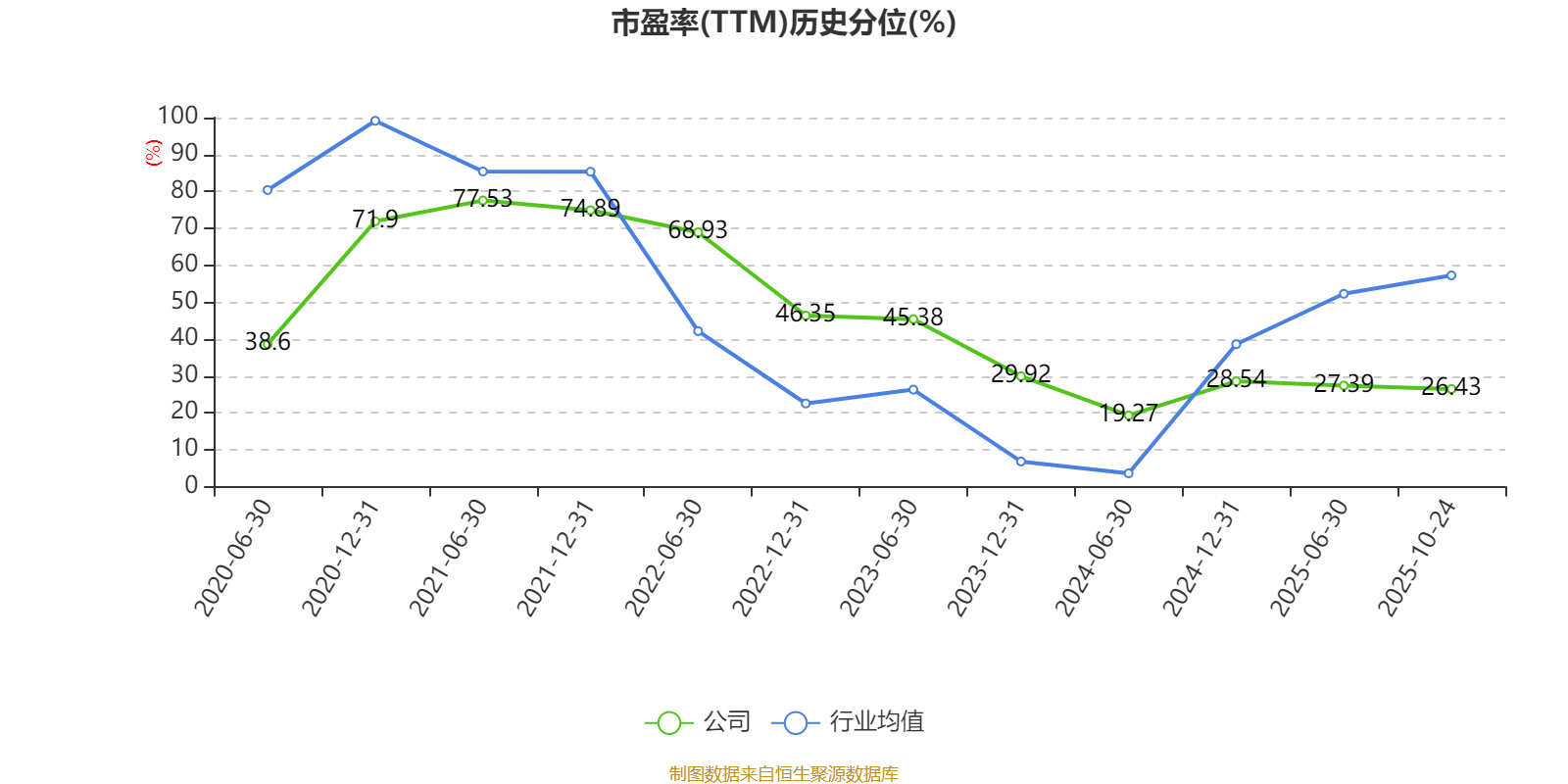 市盈率、市净率为负时,不显示当期分位数,会导致折线图中断。